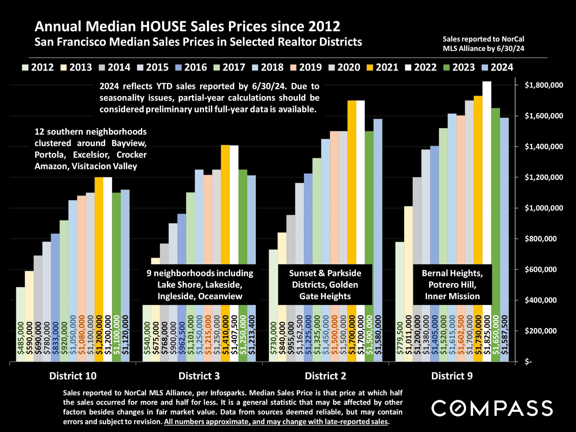 ❑ The median house sales price in Q2 2024 rose 6% from Q2 2023, while the median condo