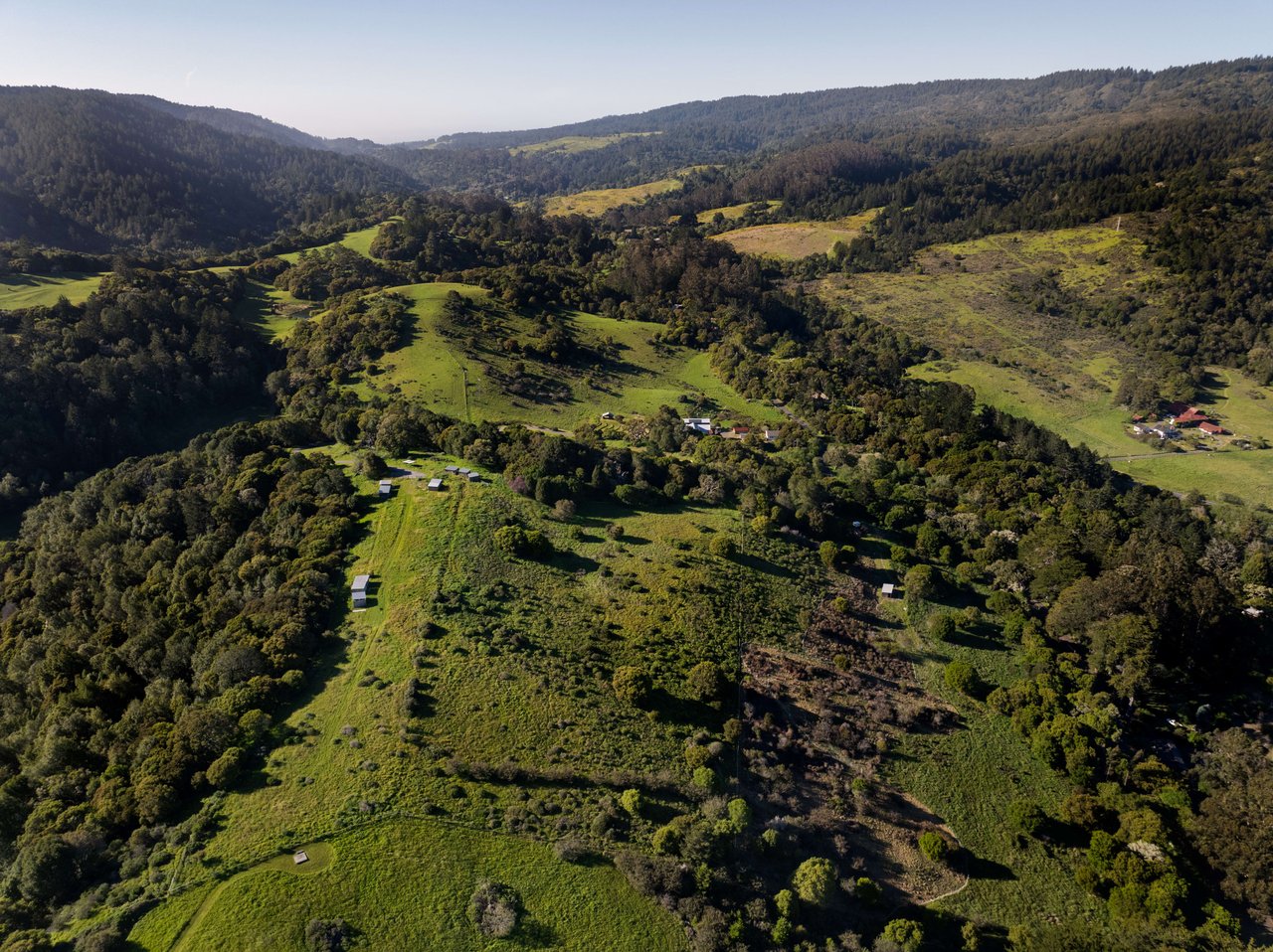 Tucked away in the serenity of Bolinas, California where the Pacific Ocean and Mt. Tamalpais meet, The Hideaway is an extraordinary 65-acre coastal retreat. With breathtaking views of the Bolinas Lagoon, Stinson Beach and San Francisco, this iconic property features a rare combination of history, agricultural opportunities and an equestrian paradise. The Hideaway was the site of photographic interest for Ansel Adams in the 1930s and later became hallowed grounds for famed investor and Hardly Strictly Bluegrass festival founder Warren Hellman. Bountiful fields and terraces for sustainable agriculture, livestock stalls and vast pastures decorate the expansive property. An equestrian facility offers a picturesque riding arena next to a 7-stall barn with offices. The updated residential compound features a 1920's SFH with 4 beds, guest house, workshop, and 2 bed caretaker's residence. The adjacent hay and dairy barns have been transformed into a banquet hall with a performance stage and Hellman's famed recording studio. Surrounded by world-class coastal beauty, The Hideaway is moments away from amazing surfing, kayaking, hiking and wildlife preserves. Replete with lush rolling hills, sensational sunrises and sunsets, and sprawling vistas, this is a rare opportunity to own a piece of history.